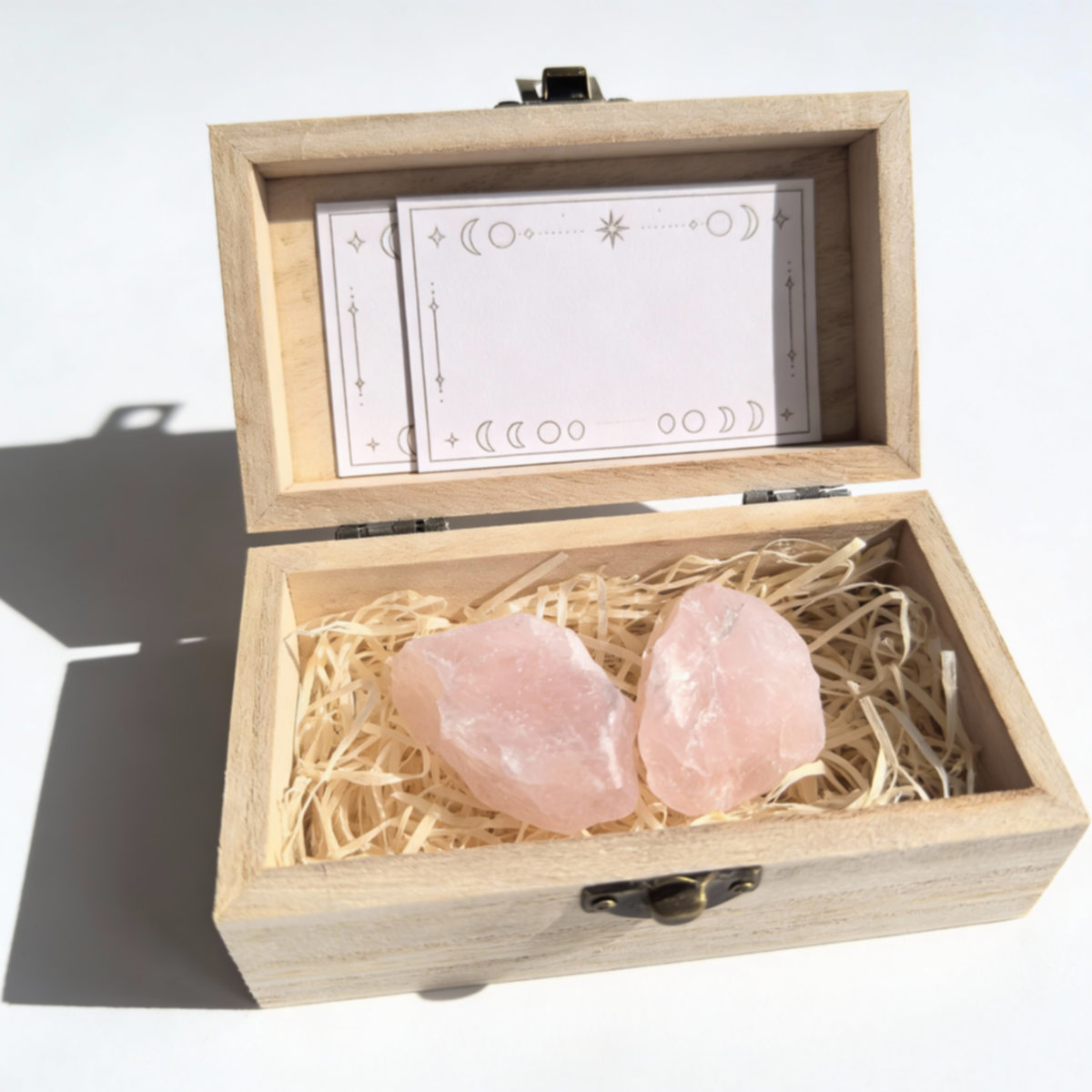 Розовият кварц носи мекота, приемане и емоционална отвореност. В този комплект той не работи сам - той работи в двойка, точно както хората, за които е създаден.